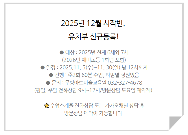 드뎌 11월~! 무빙아트미술교육원미술교습소의 유치부 신규학생을 모집합니다.
