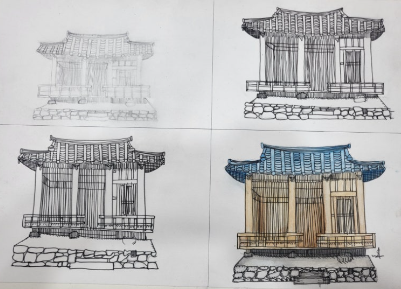 여행지에 가서 사진을 찍는 것처럼, 수첩에 쓱쓱 추억의 장소를 스케치할 수 있기를 바라는 분들도 계시는데요. 이런 경우에는 소묘보다 캐주얼한 연필드로잉을 추천드리고 있습니다.